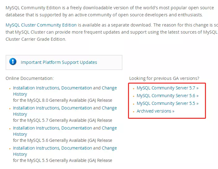 也可以直接到mysql官网选择其他版本进行下载。