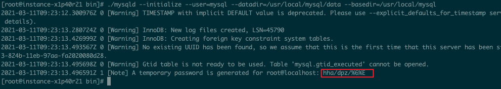 ./mysqld –initialize –user=mysql –datadir=/usr/local/mysql/data –basedir=/usr/local/mysql