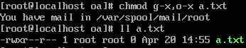 如果想给a.txt的用户组和其他用户也加上执行权限,可以加上多个。