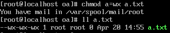 如果对文件设置a属性,只能在文件中添加数据(因为vi被禁用了,所以用echo >> 输出重定向追加的方式),不能删除也不能修改数据。如果对目录设置a属性,那么只允许在目录中新建和修改文件,不允许删除文件,可以适用于各种日志文件。