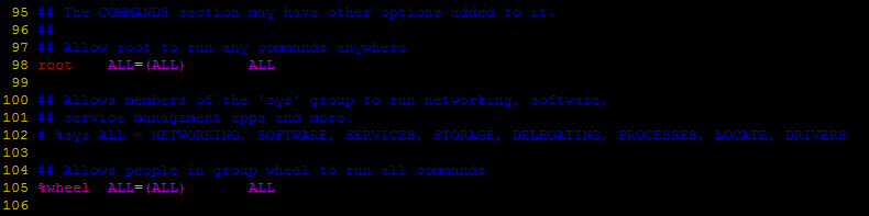 ## Same thing without a password # %wheel ALL=(ALL) NOPASSWD: ALL