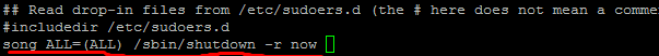 在配置文件中最后一行给song用户添加shutdown权限并保存