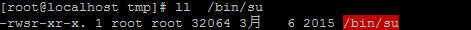 [root@localhost tmp]# which passwd /usr/bin/passwd [root@localhost tmp]# ll /usr/bin/passwd -rwsr-xr-x. 1 root root 27832 6月 10 2014 /usr/bin/passwd