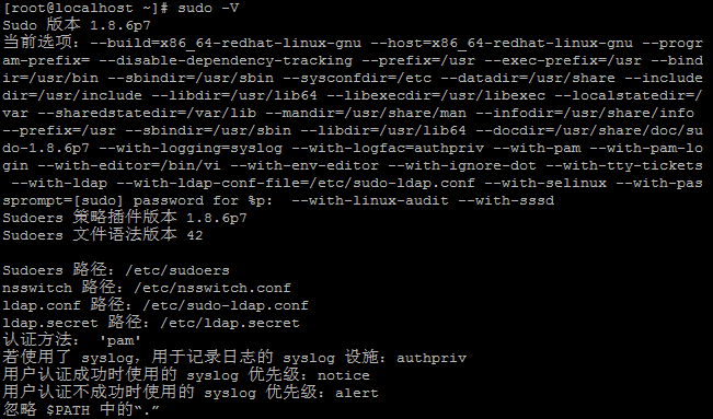 使用 man 5 sudoers 命令查看配置文件详细解释