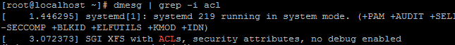 查看系统是否支持ACL,使用dmesg命令(可以帮助用户了解系统的启动信息,可以查看ACL信息)查看,发现xfs文件系统是默认支持ACL权限的。