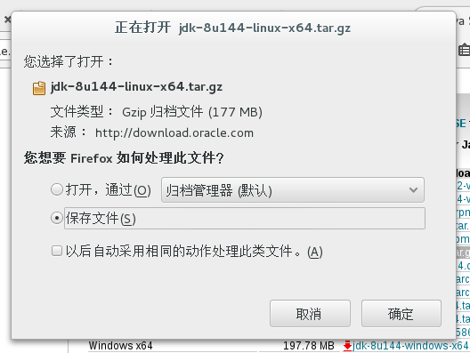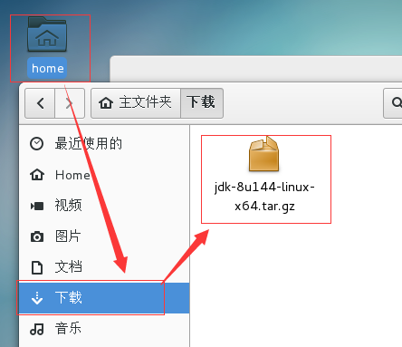 例如当前登陆用户是root,那么下载位置为”/root/下载/jdk-8u144-linux-x64.tar.gz”.