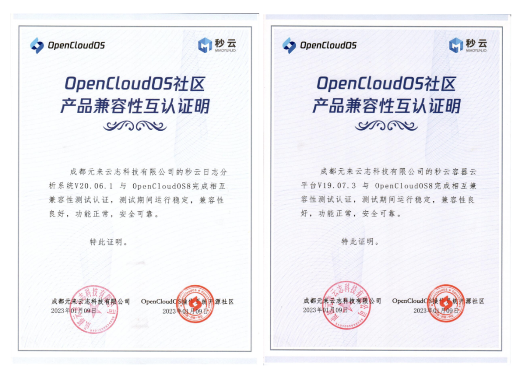 近日,成都元来云志科技有限公司(简称「秒云」)的秒云容器云平台和秒云日志分析系统与 OpenCloudOS 完成相互兼容认证,测试期间,整体运行稳定,在功能、性能及兼容性方面表现良好。