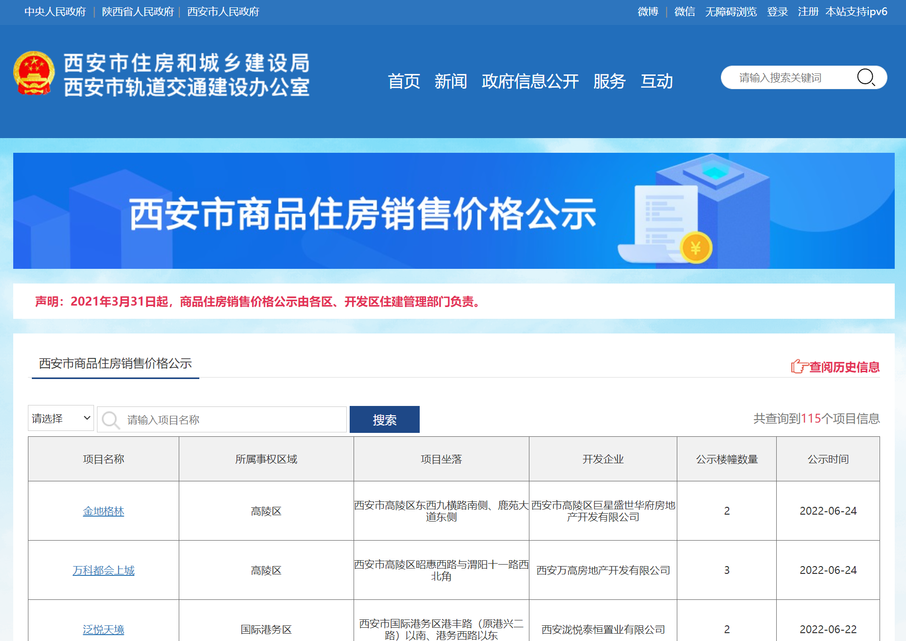 - 项目信息:项目名称、所属事权区域、项目坐落、开发企业、公示楼幢数量、公示时间