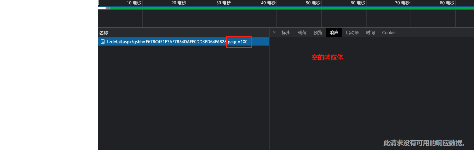 可当我在请求楼幢信息页的时候,同样传入 page=100,发现并不一样,响应体居然是空的: