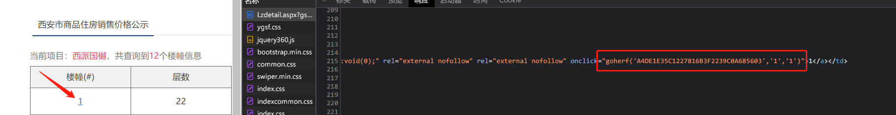 那么楼幢信息页呢?是不是也是这么处理的呢?结果它不一样了!在楼幢信息页,点击楼幢号,它也是调用了一个 goherf 方法: