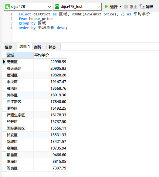 我们来需求分解下,要想知道西安每个区域的新房均价是多少