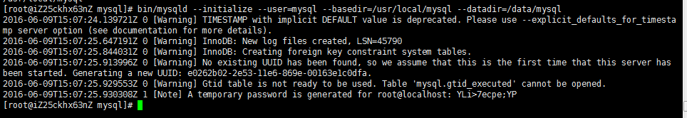 # bin/mysqld –initialize –user=mysql –basedir=/usr/local/mysql –datadir=/data/mysql