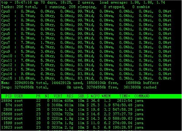 18249 root 18 0 3201m 1.9g 11m S 35.9 6.0 569:39.41 java