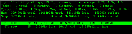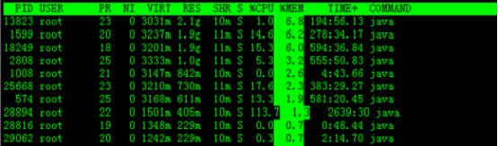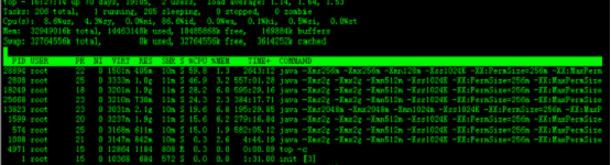 13823 root 23 0 3031m 2.1g 10m S 0.3 6.8 176:57.34 java
