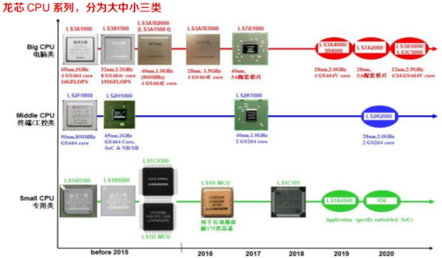 龙芯 CPU 系列包括龙芯 3 号大 CPU、 龙芯 2 号中 CPU 、龙芯 1 号小 CPU 三个系列,分别针对电脑(桌面和服务器)、工控和嵌入式、单片机领域。重点介绍用于桌面和服务器的龙芯3 号系列 CPU。
