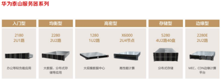 华为推出了基于鲲鹏 CPU 的泰山服务器系列,包含多个种类。根据华为 2019 年的生态大会公布的信息,华为未来将重点聚焦于算力的上游,进行生态伙伴赋能,未来有可能逐渐退出服务器整机领域。认为,随着华为生态建设的逐步完善和厂商对鲲鹏 CPU 接受度进一步提高,华为鲲鹏CPU 未来有望不依赖于华为自己的服务器整机进行推广,从而实现战略升维。
