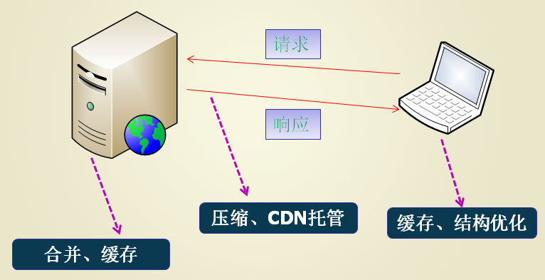 对于,我们前端来说,性能优化,主要指的是,提升页面的加载速度,避免内存泄露,避免频繁的重绘,改进算法(尽量使用JS的原生函数)。下面我们主要讨论加载速度
