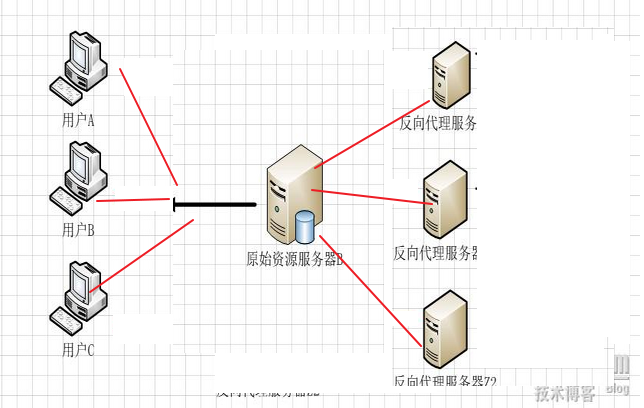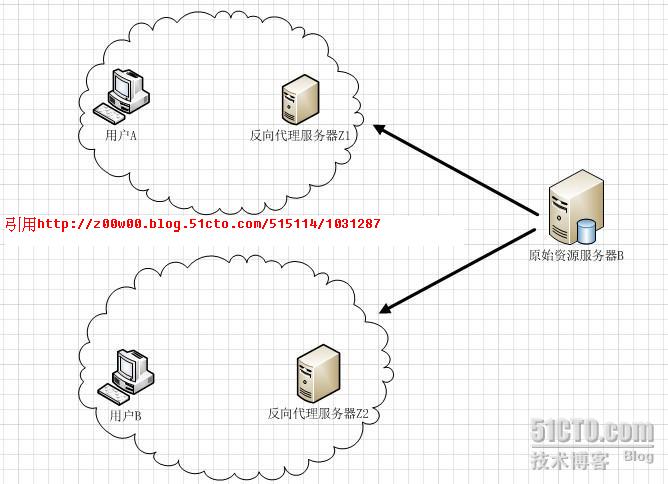 当反向代理服务器不止一个的时候,我们甚至可以把它们做成集群,当更多的用户访问资源服务器B的时候,让不同的代理服务器Z(x)去应答不同的用户,然后发送不同用户需要的资源。
