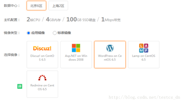 3、选择WordPress on CentOS 6.5 的镜像。为什么选择这个镜像呢?因为它很神奇,具体我们下面细说。