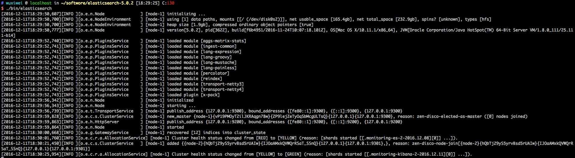 (2)示例二开启时,实例一报警告(实际操作中可以忽略,不然将无法实现ES的分布式集群作用):