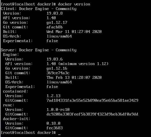 #安装最新版本 sudo yum install -y docker-ce #安装指定版本,19.03.6版本 sudo yum install -y docker-ce-19.03.6