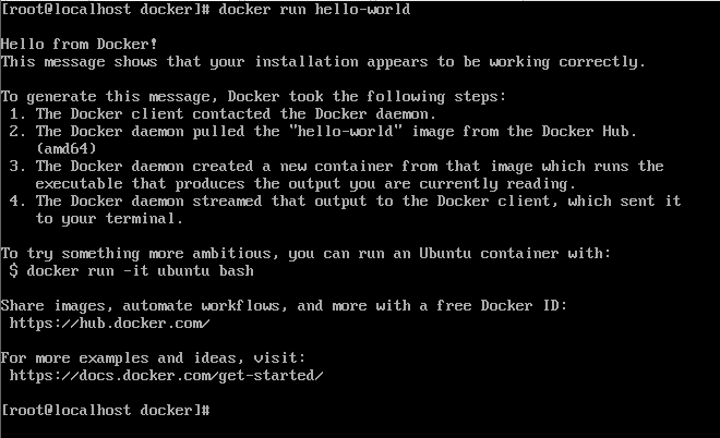 当看到这段文字时,表示hello-world镜像拉取并运行成功。