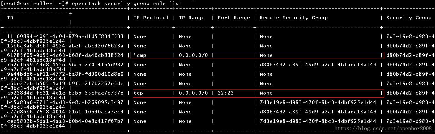 查看安全组规则:#openstack security group rule list