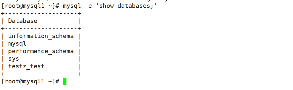 mysql -e 'create database testz_test;' mysql -e 'show databases;'