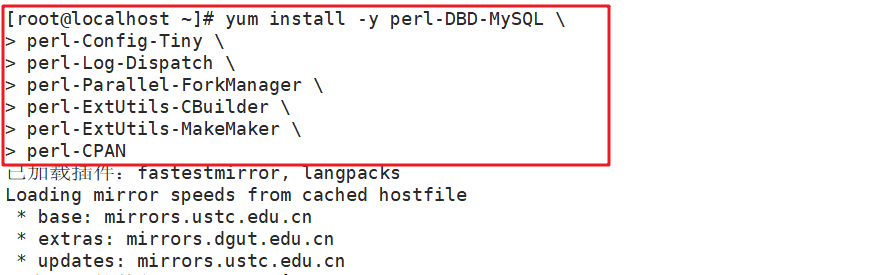yum install -y perl-DBD-MySQL perl-Config-Tiny perl-Log-Dispatch perl-Parallel-ForkManager perl-ExtUtils-CBuilder perl-ExtUtils-MakeMaker perl-CPAN