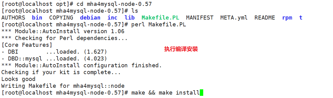 cd /opt tar zxvf mha4mysql-node-0.57.tar.gz cd mha4mysql-node-0.57 perl Makefile.PL make && make install