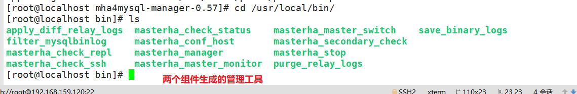 #node组件安装后也会在/usr/local/bin 下面会生成几个脚本(这些工具通常由 MHAManager 的脚本触发,无需人为操作)主要如下: