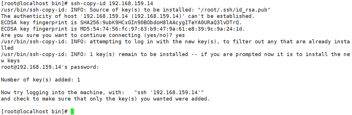 ssh-keygen -t rsa #一路按回车键 ssh-copy-id 192.168.159.130 ssh-copy-id 192.168.159.14