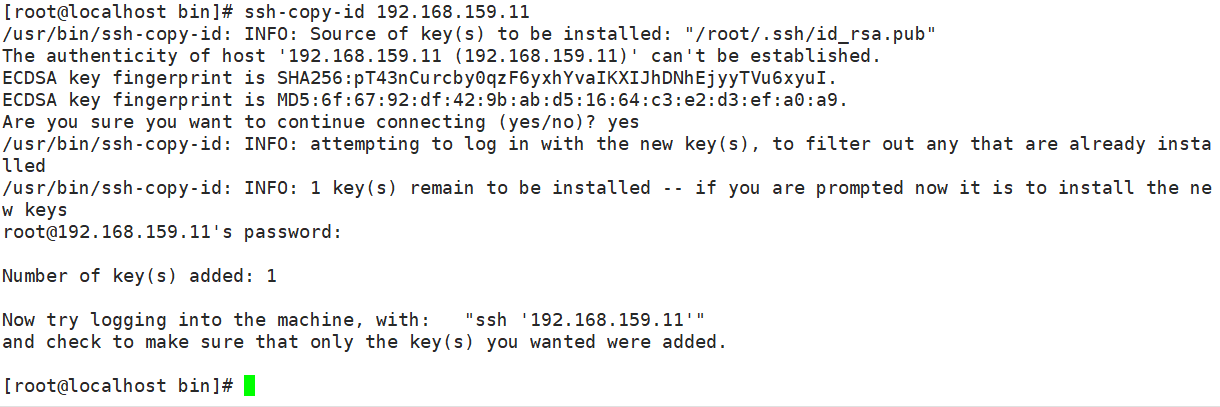 ssh-keygen -t rsa #一路按回车键 ssh-copy-id 192.168.159.130 ssh-copy-id 192.168.159.11