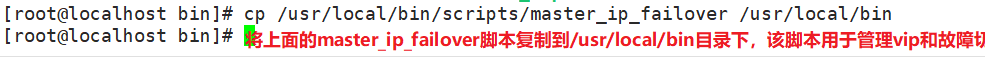 2、复制上述的自动切换时 VIP 管理的脚本到 /usr/local/bin 目录,这里使用master_ip_failover脚本来管理 VIP 和故障切换