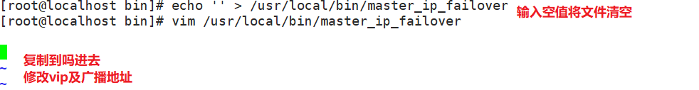 echo '' > /usr/local/bin/master_ip_failover vim /usr/local/bin/master_ip_failover