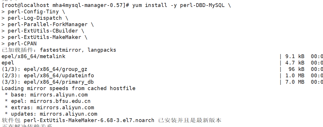 1、所有服务器上都安装 MHA 依赖的环境,首先安装 epel 源,需要在线源安装