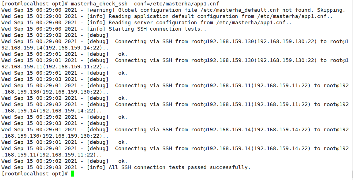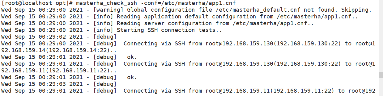 masterha_check_ssh -conf=/etc/masterha/app1.cnfg