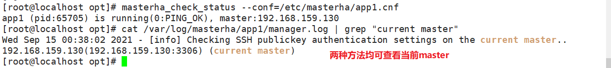 cat /var/log/masterha/app1/manager.log | grep "current master"