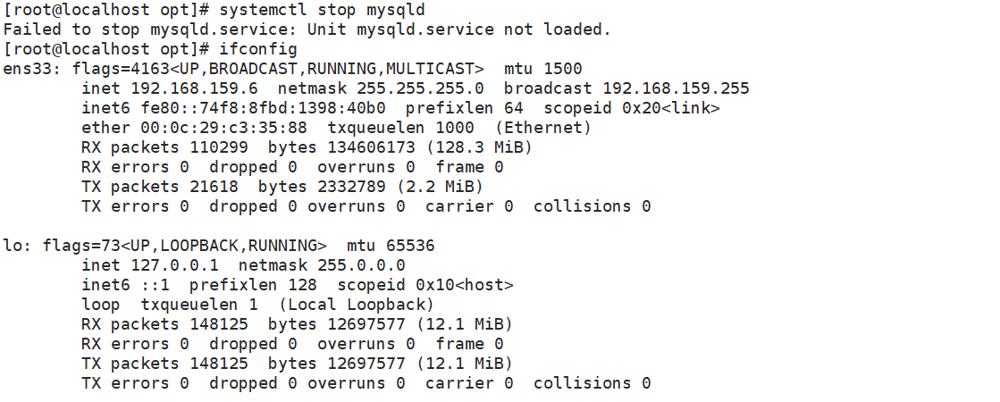 - 查看 Mysql1 的 VIP 地址 192.168.184.200 是否存在,这个 VIP 地址不会因为 manager 节点停止 MHA 服务而消失。