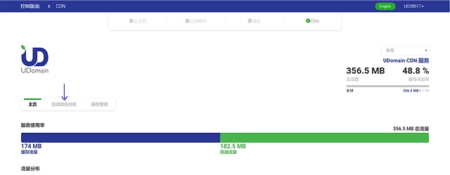添加后来到控制台,点击“CDN”—>”管理”,随后点击加速域名列表