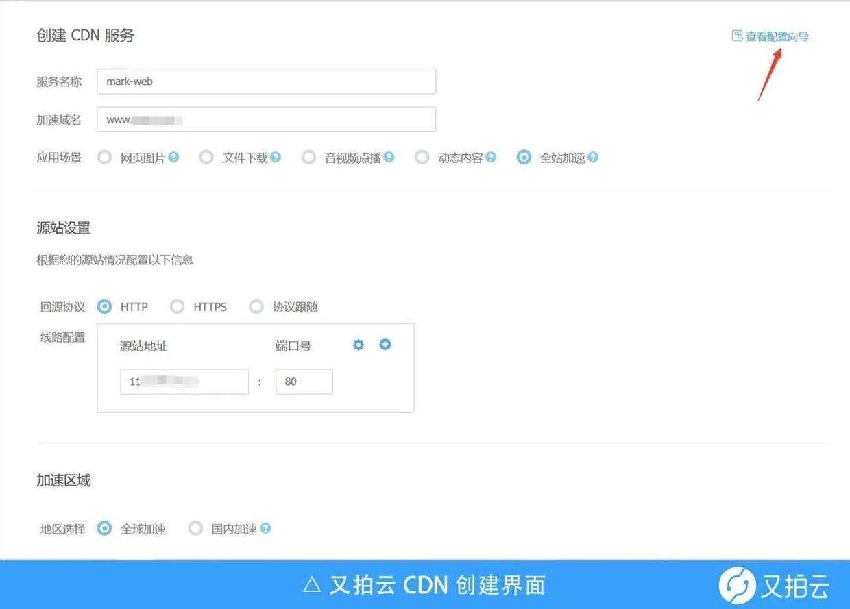 二狗子很顺利的完成了一系列操作,在又拍云控制台上,跟着配置向导,分分钟就创建好了 CDN 服务。
