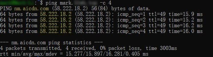 “那么,接下来就来验证一下,配置是否生效了吧!”二狗子想了想,“首先看一下,用户访问加速域名,是否可以请求到 CDN 节点吧。”最简单的办法就是使用 ping 命令测试一下访问域名,看看返回的 IP。