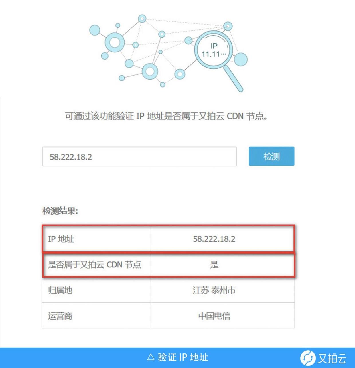 ping 加速域名,返回的节点已经是 CDN 的节点 IP 了,二狗子拿着这个 IP 在又拍云控制台上查了一下。