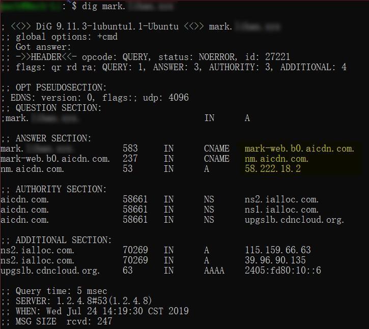 “嗯,看来没有太大问题,使用 dig 看域名解析也是对的。这还真不错,可以完美的隐藏掉我的云主机 IP 地址。”
