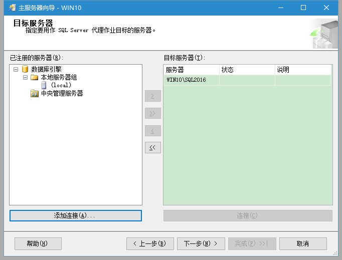 单击“下一步”,会出现目标服务器”对话框(插图4)。你可能需要在这个对话框中注册你的连接,所以点击添加连接……并添加适当的连接。对于这一步的目的,你会使用本地实例Target1和Target1。你可以随时返回,添加或删除服务器或实例。