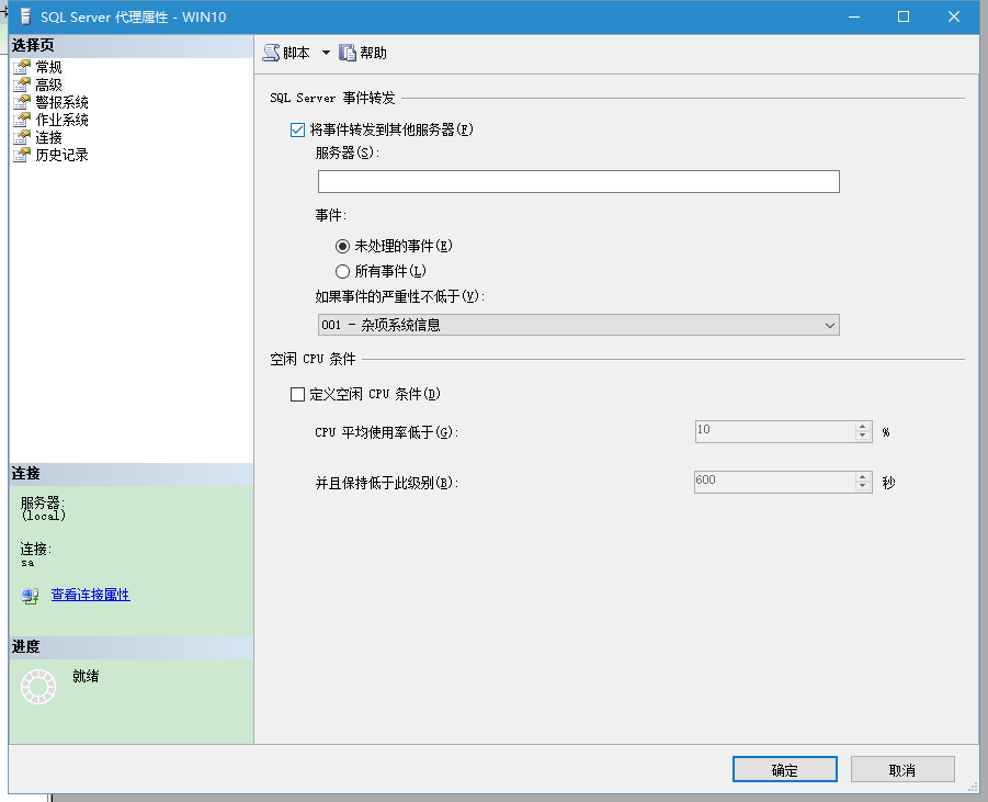 你 也可以配置SQL Server错误事件转发到中心服务器,比如你的MSX服务器。这将产生额外的网络流量,但你可以在中心服务器上查看所有TSX服务器相关的事件。右键单 击SQL Server代理节点,选择属性,然后在高级选项卡。你可以选择“将事件转发到其他服务器”,输入服务器名称,然后配置要转发的事件。例如,插图12显示了一个配置,只将未处理的系统事件(严重性为17或更高)转发到MSX服务器。