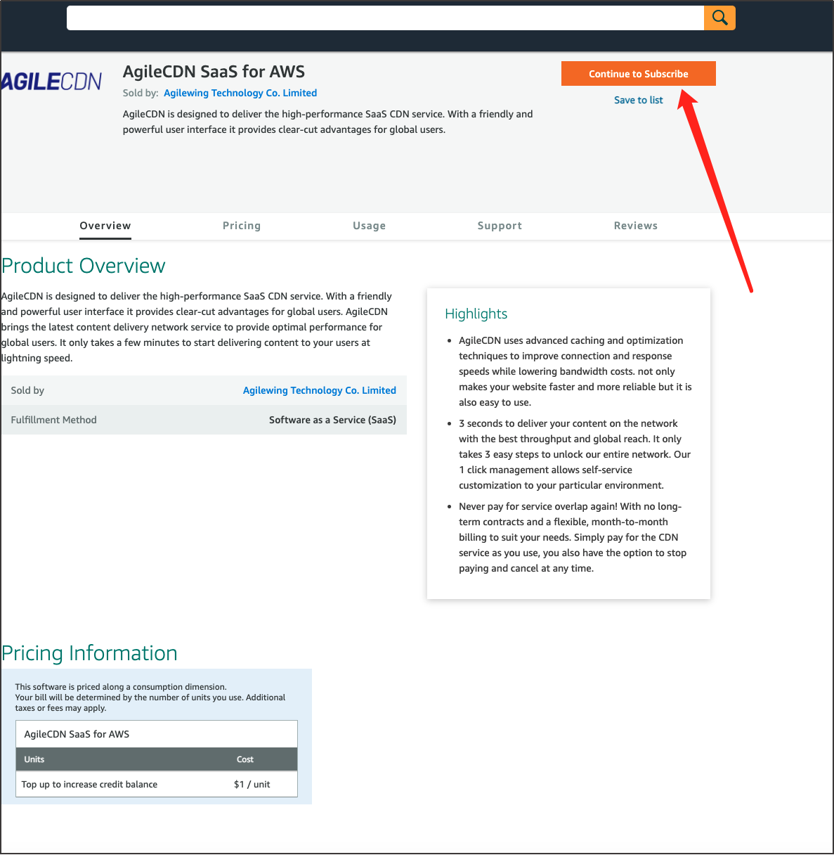 二、在AWS Marketplace轻松订阅并使用AgileCDN