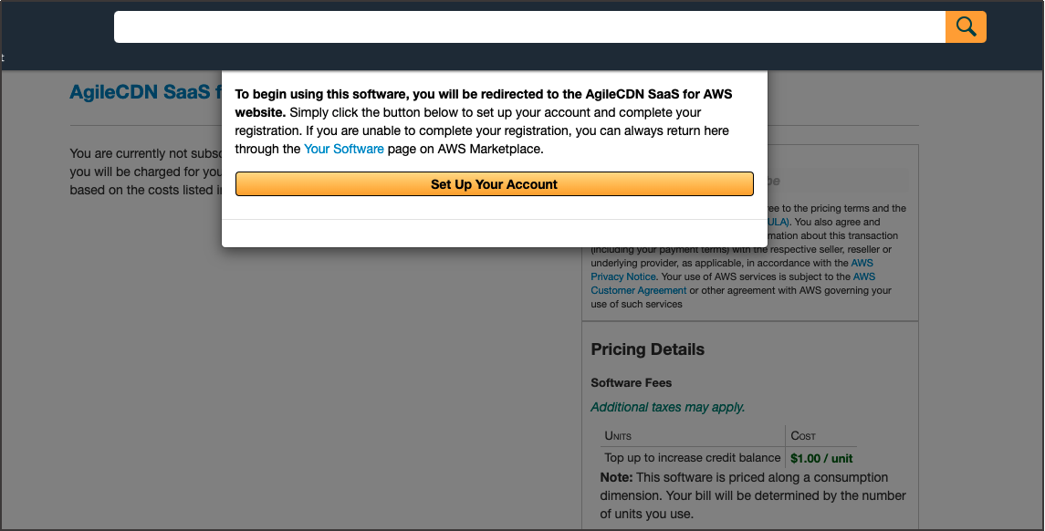 来到确认订购页面,点击“Subscribe”,点击“Set Up Your Account”后,进入产品注册页面,就可以开启AgileCDN全球加速服务了。