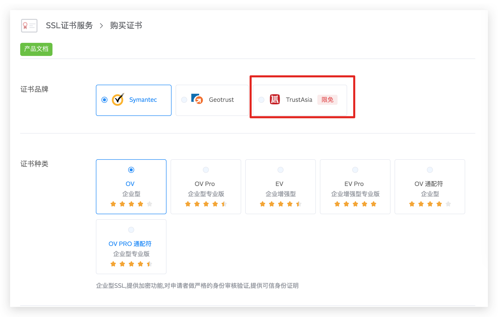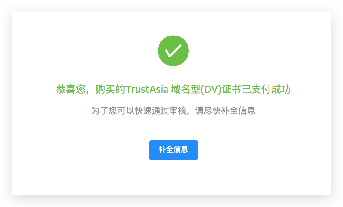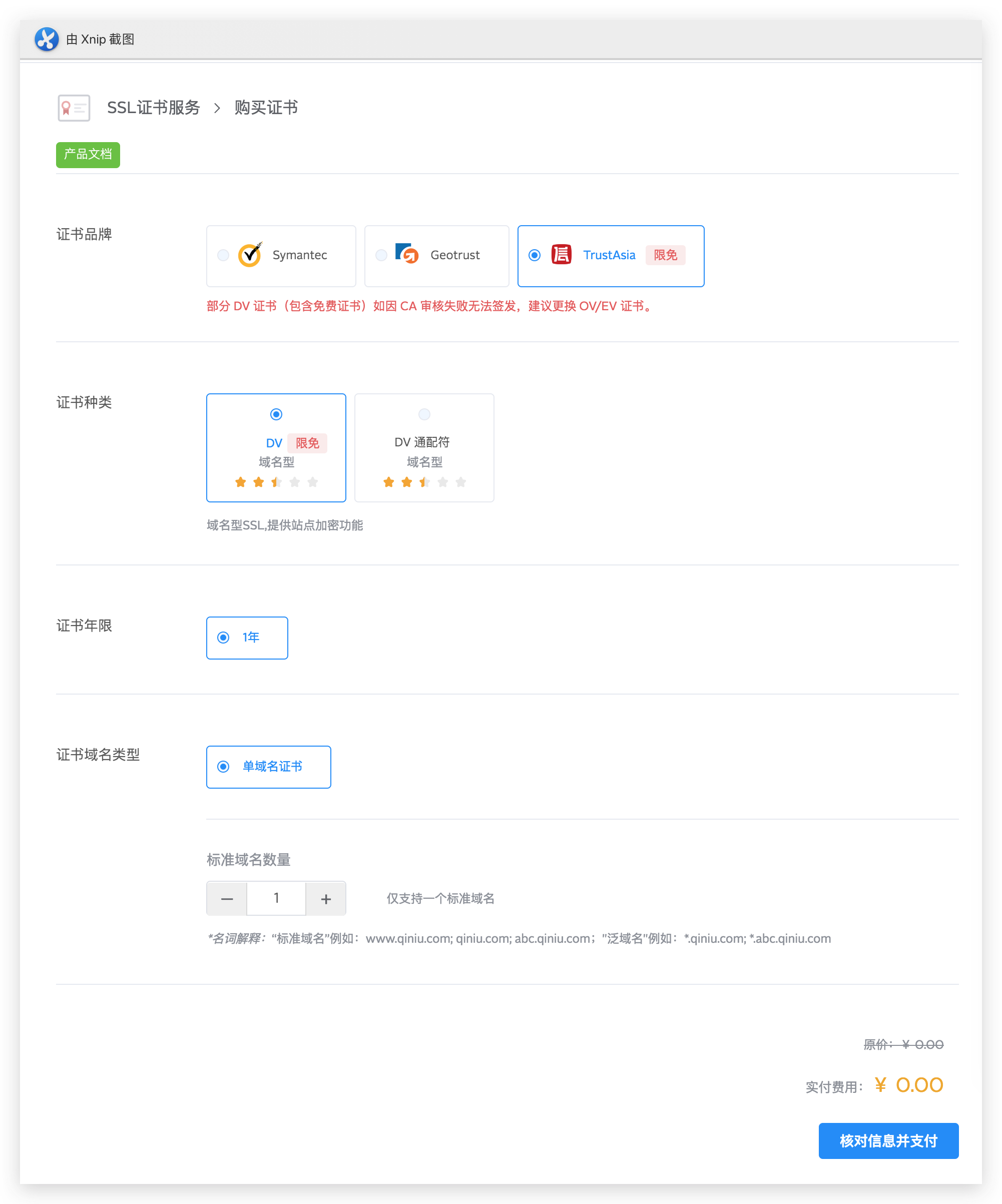 可以看到TrustAsia有限免,点击限免的,拉到最下面有核对信息并支付