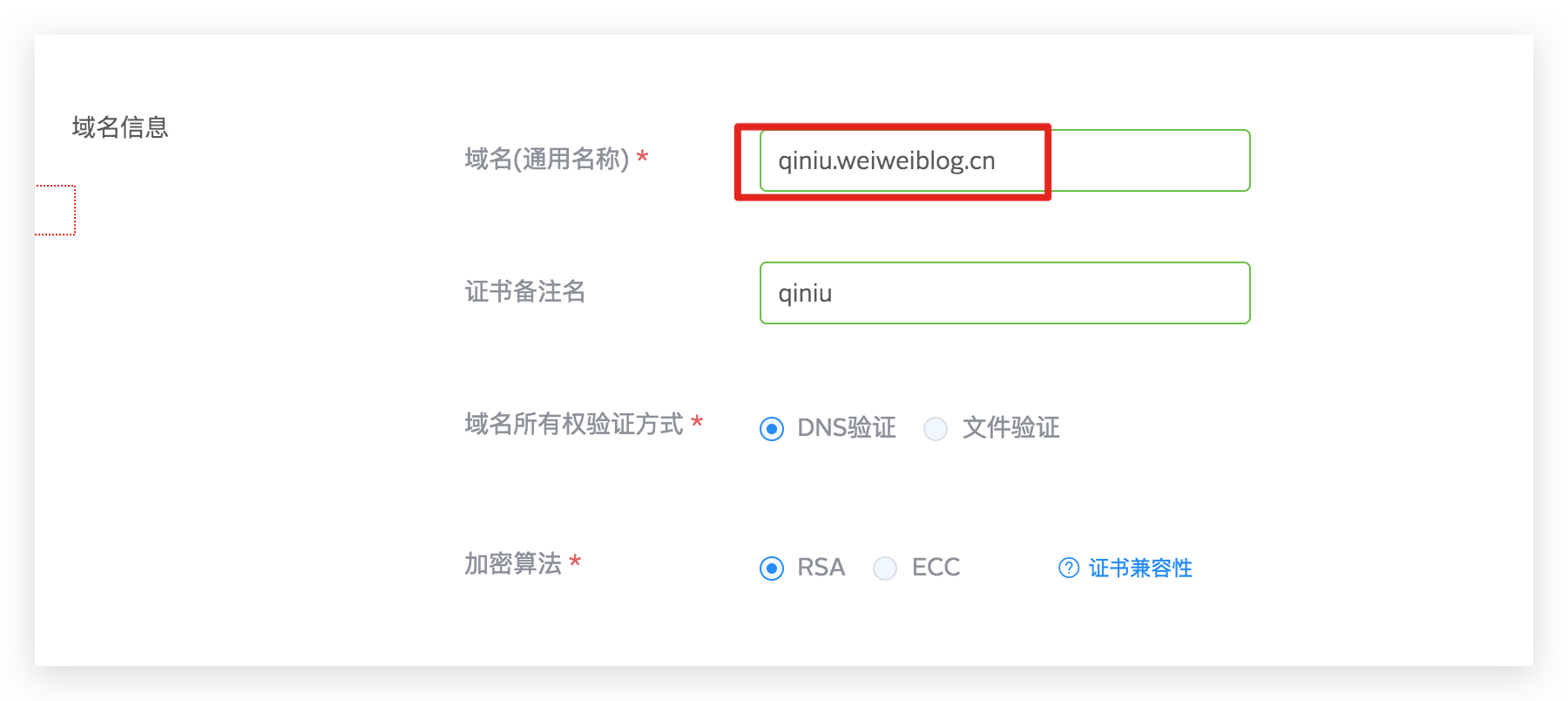 首先你要有一个备案的域名,如果不知道如何备案域名,请移步10天搞定域名备案(全记录),然后你得给你的域名申请SSL证书,刚好七牛云有提供一年免费的SSL证书。